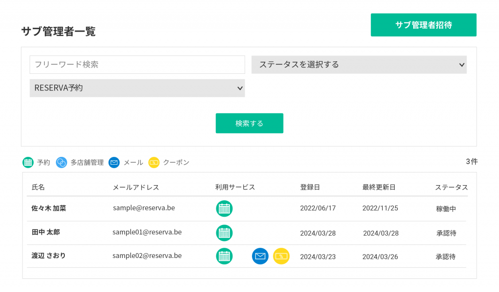 健康保険組合では、保健師や事務担当者など複数の職員が予約業務に関わることがあります。その際に役立つのがサブ管理者設定機能です。この機能を利用すると、管理権限を複数の職員に付与できるため、部署ごとに予約管理を分担できます。担当者ごとに業務を分担することで、予約対応の効率が向上し、組織全体の業務負担を軽減できます。