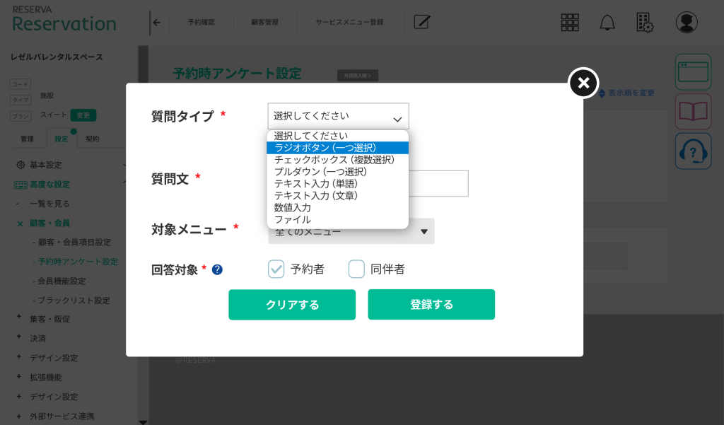 予約アンケートのカスタマイズ