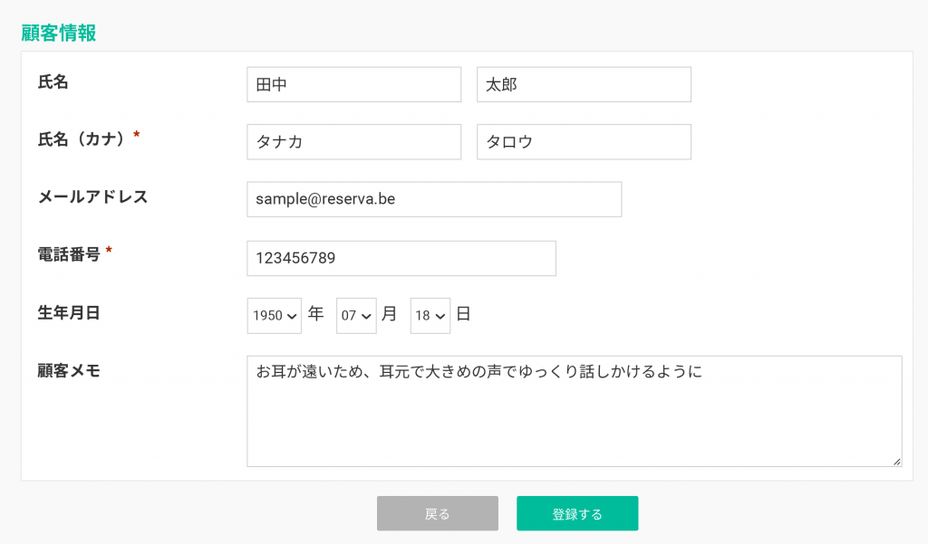 管理画面から患者を登録することもできます。患者メモも記録できるため、次回の予約時に情報を思い出したり、