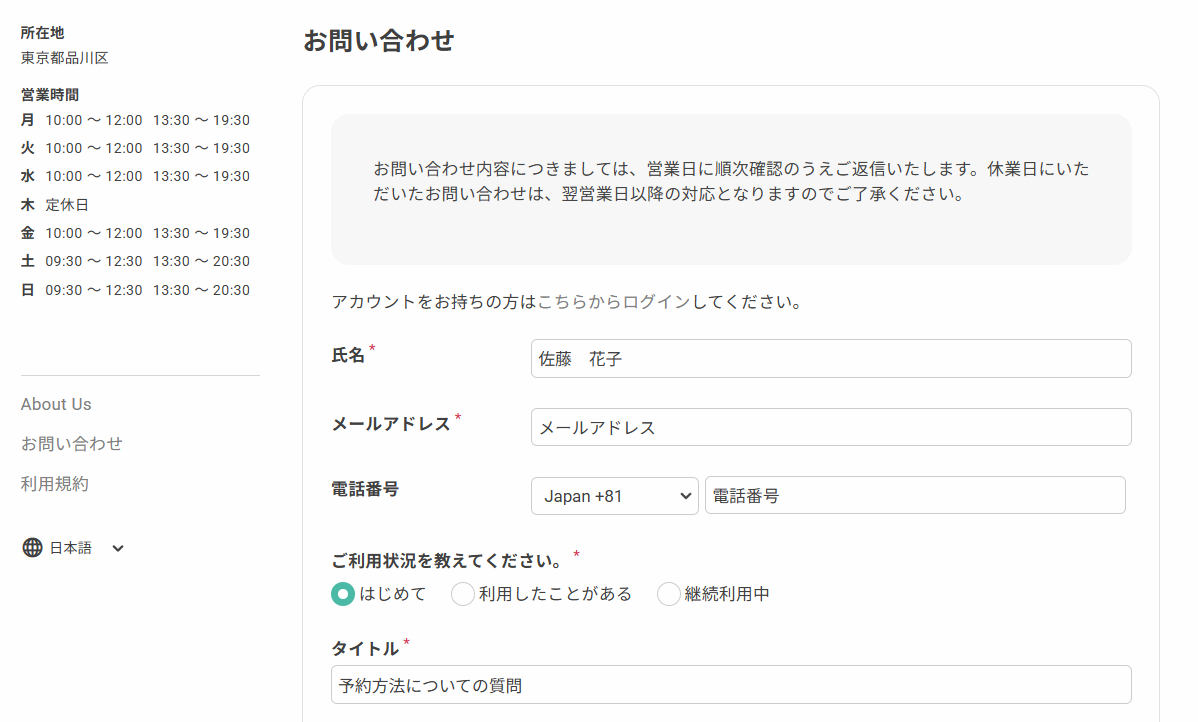 注意事項や回答目安、問い合わせ前の確認事項などを自由に記載することで、ユーザーの利便性と業務の効率を高めることができます。